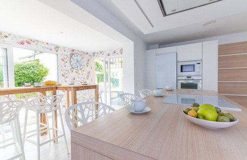 In a place with immense charm, we find this great house with views of the mountain and the private pool. Located in an area very close to Santander (just 10 minutes by car) and near the Natural Park of the Liencres Dunes and its beaches (7 minutes by car), this location will captivate you. The accommodation is fully equipped and close to all kinds of services and good restaurants.The house is located in a residential area, very quiet. A perfect place to get to know Cantabria, enjoy the outdoors and the surroundings.HOUSE LAYOUTGround floor: features a bedroom, a bathroom, a living room that connects to the porch and the pool, and a large kitchen that also connects to the porch.First floor: with 3 double bedrooms and two bathrooms, one en suite.Second floor: open space, with a double bed.Garage: it can be accessed both from outside and from the ground floor.KITCHENIt is equipped with all appliances: fridge, oven, microwave, dishwasher, washing machine, coffee maker, kettle... And all of high qualityEXTERIOR AREAThe property is fully fenced. It has a private swimming pool and outdoor furniture, as can be seen in the photos. The pool is not fencedFOR SURF LOVERS7 minutes from Liencres, a paradise for surf lovers. Known for offering exceptional conditions, making it an essential destination for sports enthusiasts. The natural environment surrounding Liencres adds a special touch to the experience. The Natural Park of the Liencres Dunes offers an impressive backdrop, with sand dunes and cliffs that create a spectacular landscape.Surfboards can be comfortably left in the garage. Although they can also be left outside the house, in a corner.MANDATORY CHECK-INWe will send an email to complete the online check-in on the same day of the booking confirmation. The check-in is a mandatory procedure in Spain. It is essential to enter any of our accommodations. The check-in must be completed 20 hours before arrival. Consult us if you have any doubts, we will help you in everything.DEPOSITTo facilitate your arrival, you will receive, a few days before arrival, a request to make an online security deposit. This security deposit will not be charged to your bank account. This procedure is authorised by your booking platform.RULESNo groups under 25 years old are allowed. No pets are allowed. Barbecues are not permitted by community rules.We love for our guests to enjoy the accommodation to the fullest, always respecting the property and the environment. For this reason, parties are not allowed. We invite you to keep this in mind before making a reservation.