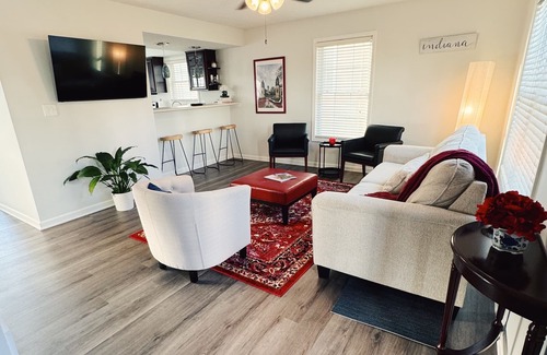 This private townhome is perfect for IU games, weddings, events, or a getaway with friends or family. You'll find plenty of space to relax and enjoy the red and white charm, along with a wooded backyard view. The location is ideal – a quiet neighborhood that's just a quick Uber ride to downtown and close to all that Bloomington has to offer, including local restaurants, bars, and shops.