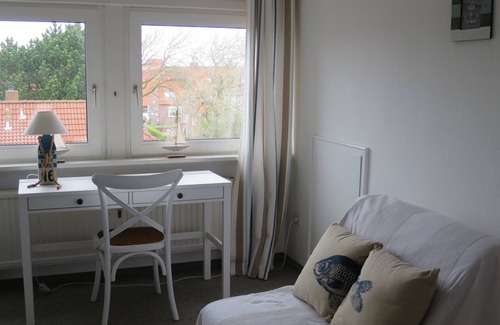 The bright and quiet apartment 'SANDBANK' is very centrally located in Ostdorf - just a few minutes' walk from the town center with restaurants and shops, a ferry pier, the beach and the Wadden Sea.