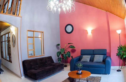 Stay in this incredible 100-square-meter, two-story duplex apartment with high ceilings and pendant lights, offering a warm and unique style in the Gourmet Zone of Chapinero, Quinta Camacho.
