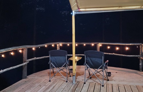The Tent sits on a deck with rounded terrace where you can sit and watch the forest grow. Take your time. No rush. Forest takes a long time to grow. Take your mind from the hustle and fast-moving city life, take time for yourself.