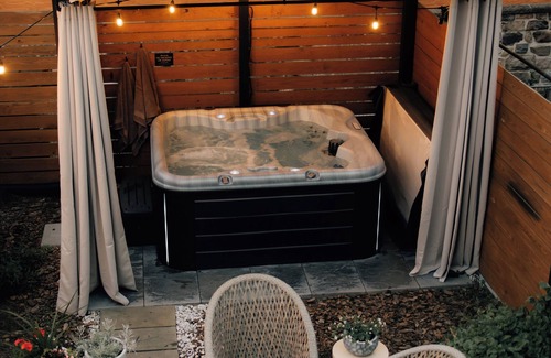 After a day of exploration, retreat to the backyard, where your private hot tub awaits, providing the perfect space to relax together.