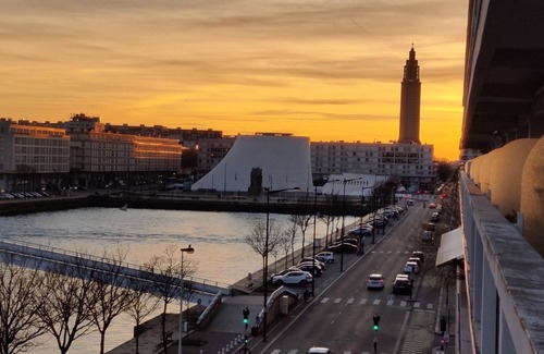 Bright living room with panoramic view of the trade basin and south-facing terrace: - living room/lounge with connected flat screen TV, very good quality convertible sofa (with mattress topper for more comfort), - Fully equipped open kitchen with exceptional view (dishwasher, filter coffee maker, built-in oven, toaster, induction hob, freezer, etc.), - Beautiful master suite with 160x200cm bed and private bathroom with Italian shower and washing machine, - Independent WC with washbasin. Large terrace with garden furniture for 4 people and deckchairs available. Sheets, towels and charges (heating and electricity) are included for your comfort. Parking spaces near the residence. Possibility to come by train. The apartment is located on the 3rd floor with elevator in a popular tourist area of Le Havre. You will particularly appreciate the exceptional panoramic view and the terrace with garden furniture, deckchairs and awning. The owners have renovated it with choice equipment combining comfort and modernity and will be happy to guide you to the many tourist attractions nearby. You can do everything on foot and easily travel between Etretat and Honfleur.