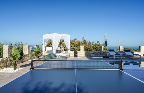 Best-rates for the Tria Monastiria villa starts from $663 per night with includes Wellness Facilities, Breakfast, Kitchen, Pet Friendly, Wheelchair Accessible, Fireplace/Heating, Entertainment, Barbecue/Outdoor Cooking, Child Friendly, Internet, Designated Smoking Area, TV, Accessibility, Air Conditioner, Pool, Private Pool, Balcony/Terrace, Sports/Activities, Bedding/Linens, Guest Services, Laundry, Parking, View, Ocean View, Oceanfront with all other facilities. Casai.ca matches every traveler with their perfect accommodation, whether you are traveling with a group, friends, family, or pets.
