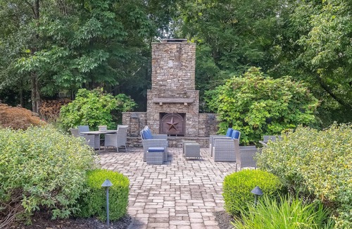 Experience refinement, beauty, and luxury at The French Quarter Inn! Nestled atop the mountain, enjoy New Orleans charm with long-range mountain views, sunsets, and a sunken mini pool. With 6 bedrooms and 4.5 baths accommodating up to 27 guests, the spacious family area features a gourmet kitchen and ample lounging space. Outdoor highlights include a screened porch with fireplace and swing bed, and a courtyard with fireplace. Optional $30 per night fee to heat the mini pool. Inquire for details.