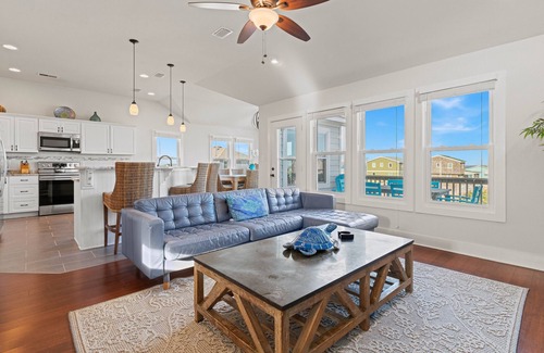 New home four bedrooms, two king suits, queen room with pull out sofa, bunk room with four bunk beds. Friday to Friday rentals during the summer please. Open floor plan with private pool, hot tub, game room on first floor with shuffleboard and full size fridge. Outdoor shower. 3 full bathrooms and two half baths and an outdoor shower. Beautifuly decorated with smart TVs and WiFi throughout. Kitchen equipped with cookware, tableware, and glassware. Microwave, oven, fridge, k cup coffee maker and regular coffee maker.