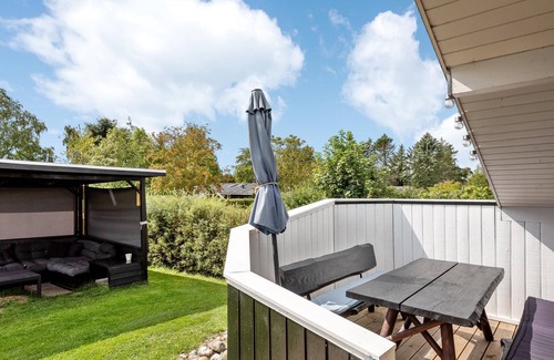 From the house it is only a few steps walk to the child-friendly swimming beach. Moreover, it is located on a beautiful natural plot where your children can play ball and everyone can enjoy the vacation to the fullest. The interior includes, for example, an eat-in kitchen with a glass bay window. A hit is always the refreshing pool. If you want to spend the evenings outdoors, you can choose between several terraces for this purpose. Enjoy here especially the long balmy summer evenings. In the surrounding area there are among others Koldinghus and Trapholt to visit.