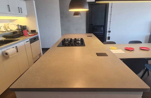 An additional office room with two desks is available, ideal for working or studying. Inside this room, you will also find a washing machine and shelves, offering extra functionality during your stay.