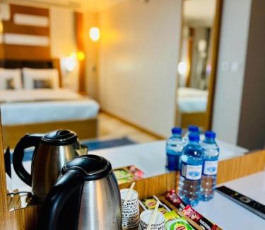 Food & DrinkTea/Coffee makerBathroomToilet paper, Free toiletries, Private bathroom, Towels, Shower, Hairdryer, Toilet, Bathtub, Towels/Sheets (extra fee), SlippersGeneralSafe, Heating, Air conditioningOutdoorsBalconyLiving AreaDeskMedia & TechnologyFlat-screen TVServicesWake-up serviceKitchenElectric kettle, Dining tableBedroomWardrobe or closet, LinensRoom AmenitiesClothes rack |