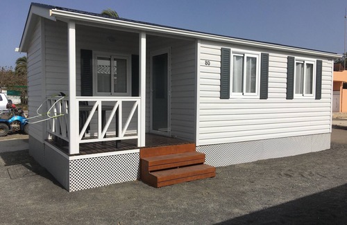 Bungalows of 32 m2 interior plus terrace. They consist of a living room with television, air conditioning and heating. Double bedroom and bedroom with bunk bed (2 beds of 90 cm.). Full bathroom with hot water.