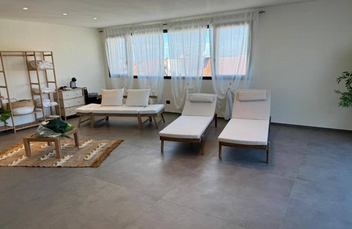 Luxury suite in Santa Margherita di Belice offers 70 sqm of space for up to 2 guests. You have 1 bedroom and 1 bathroom at your disposal. The apartment includes a private spa with whirlpool, sensory shower, Turkish bath and Jacuzzi for your exclusive use. Private amenities include air conditioning, Wi-Fi suitable for video calls, balcony, covered terrace and breakfast included. Personalized massages are available for an extra charge. This wellness apartment with private spa combines relaxation and luxury services.