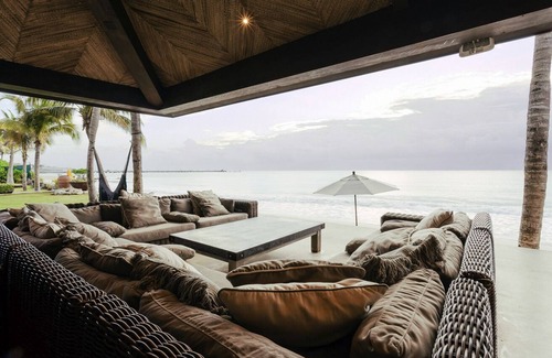 The centerpiece of the villa is the expansive beachfront palapa, a multifunctional space that includes a bar, a fully equipped kitchen with an oven and grill, indoor dining, and a cozy lounge area. Here, you can enjoy cocktails, al fresco meals, relaxation by the sea, and celebrate special occasions, all while marveling at the stunning sunrises. With a dedicated chef and butler on hand, every aspect of your stay is tailored to ensure maximum comfort and relaxation.