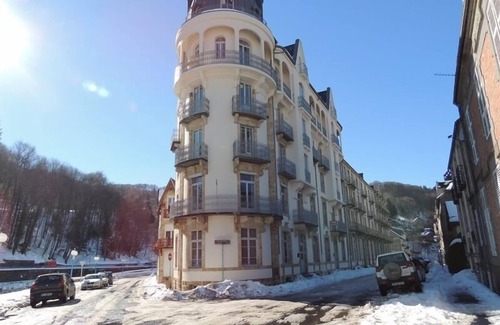 Very nice apartment in a residence of character classified. In the heart of La Bourboule world-famous health resort guests can enjoy quiet, the brightness and the magnificent view that offers this accommodation. It is located on the 4th floor serviced by an elevator. Large living room with open kitchen and large panoramic windows offering a spectacular view of the Sancy, la Bourboule and the Dordogne. 3 rooms with 1 bed 140 which one with bath à l'ancienne. Bathroom with large shower, wc independent. Balcony circling the apartment. Electric heating included. Possibilities of parking nearby. Special rate cures:-100€/week.