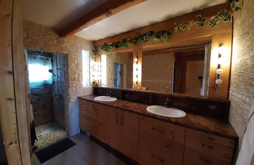 In a wild setting to live to the rhythm of nature, chalet furnished with luxury and comfort, can accommodate up to 6 people, at the edge of a private and enclosed pond. With its large terrace over the water, you will appreciate the proximity of the pond, with an incredible view closer to nature! Cozy and chic decor: wood, marble, and large windows, the rooms are bright. Two terraces equipped with hammock, garden furniture, deckchairs for a relaxing stay. A boat and vests are at your disposal, and you can access a private part of the pond for sport fishing or relaxation. The region also offers a multitude of activities. Water skiing within 1km, nautical base 3km and Walibi Rhone-Alpes Park 3km.