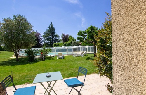 Semi-detached house with that of the owners, with a shared garden of 3500m2. Covered parking space in front of the cottage with a Wallbox to recharge your vehicle (payment by statement on site), in the secure courtyard. A main room, with a kitchen (dishwasher, oven, microwave, induction) after a step you access the living room with TV, internet, sofa, dining area. Terrace with garden furniture, gas barbecue and view of the swimming pool.