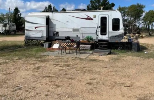 Late model (2014) travel trailer right in the middle of an operational 13-acre vineyard with winery, tasting room & farm equipment! 11 deer-fenced undeveloped additional acres to explore on your own without getting lost...feel free to go out one of many gates to follow path toWorld=class bass fishing Lake Ivie and enjoy peaceful sunbathing, swimming or fishing! Nighttime amenities include endless night sky where, after an amazing sunset, you'll enjoy crystal clear views of stars & constellations. A massive fire pit will beckon you to sit by the fire and relax with your own libations or try one of the winery's wine available for purchase on site. Picnic tables and vine-covered pergola are available for your use.