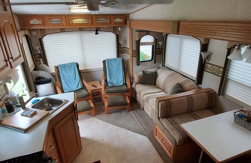"If you want to see if living in an RV is for you, look no further. Dog friendly and perfect for us. Tom was extremely friendly and helpful. We loved the RV park and the peaceful pace. The price was great and it is hard to find a nice place that will take a dog. Thank you"
