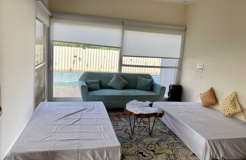 GoBravo 71: 2Bhk Farm with Pool & Garden Sector 150 Noida offers 71 accommodations with ceiling fans. Accommodations are furnished with single sofa beds. Memory foam beds feature premium bedding. A pillow menu is available. Guests can surf the web using the complimentary wireless Internet access (speed: 25+ Mbps). Bathrooms include showers with rainfall showerheads. Rollaway/extra beds (complimentary) are also available. Housekeeping is provided daily.
