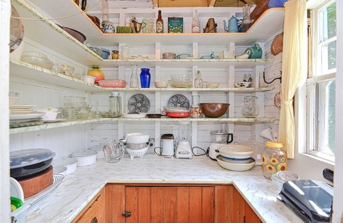 The main level includes the living room which opens to the verandah and deck, dining room, kitchen, study and half bath. The comfortable eat-in kitchen with walk-in pantry is well stocked with everything necessary to prepare meals for 12 people including a dishwasher, 5 burner gas stove, plenty of dishware, and a large capacity washer and dryer.