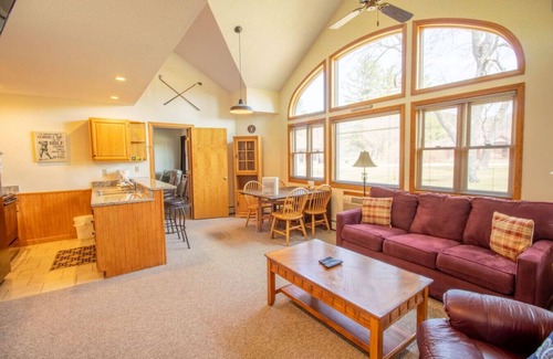 The condo features a dining area, living room, mudroom, 2 renovated bathrooms and a fully-equipped kitchen, making your stay hassle-free and enjoyable.