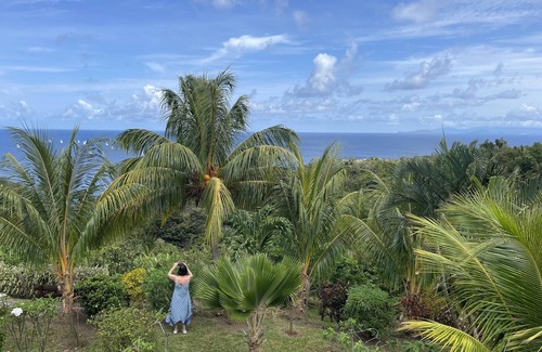 Beautiful private accommodation in a stunning setting at the heart of the Caribbean.The apartment is set in 3 acres of tropical gardens, with stunning panoramic views of the Caribbean sea, and the neighbouring French Island of Guadeloupe and the Iles des Saintes. The location, near Portsmouth is very private and peaceful, perfect for a relaxing stay, or as a base to explore the beautiful “nature island”of the Caribbean. There are numerous eating out and drinking options in nearby Portsmouth or Toucari, and less than a 10 minute drive from your Dominica accommodation.