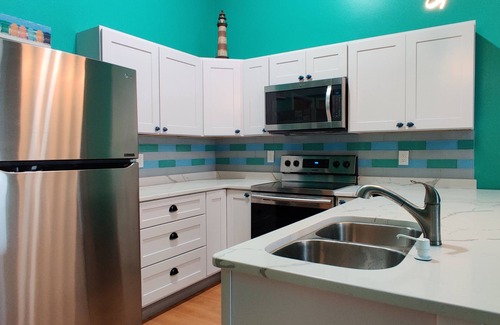 You'll enjoy this beautiful 3 bedroom townhome with a view of the Atlantic. Our guests have raved about how well equipped our townhome is! I have often prepared Thanksgiving meals in the unit, with everything I needed! There are two levels of balconies - the one off the master is very private, and the one on the top has a great view!