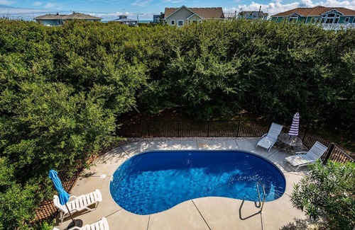 Skip the traffic to Duck and enjoy our private oasis in the trees on the ocean side of Hwy 12 in Southern Shores. Only 10 minutes from the Wright Memorial Bridge and two lots back from the beach, Willems Beach Club @ Southern Shores is an ideal vacation destination for those looking to relax in a private "treehouse" like setting. Enjoy ocean views, two levels of wrap around decks overlooking the pool, and plenty of space for the entire family to relax. Try surfing, kayaking or paddleboarding - lots of beach toys are included. Our home sits at the end of a cul-de-sac and is surrounded by tree canopy to create privacy from nearby homes while still allowing panoramic views of the Atlantic Ocean from the deck. The private beach path is right beside our house, making it an easy 3 minute walk to the beach. All 5 bedrooms are spacious and have sliding glass doors opening out to two levels of wrap-around decks. We allow one well behaved dog over one year old to join you on vacation with our prior approval and pet fee (no exceptions!).