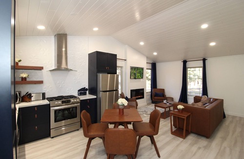 Your newly remodeled cabin provides the perfect place to unwind and relax. This cabin has been remodeled from head to toe and features new stainless appliances, new cabinets, quartz countertops, leather furniture, electric fireplace, towel warmer, premium linens and new kitchen items including new stoneware dishes, glasses, and cooking/bakeware.