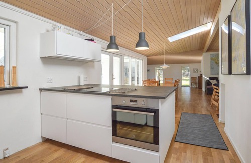The spacious cottage offers the large family a charming ambience for the vacation. 5 bedrooms, guest toilet, bathroom with shower and kitchen-living room with open fireplace are available inside. On the terrace you have it nice in any weather. In the garden the children have space to romp and there is also a barbecue. Due to the location at the end of a cul-de-sac, the surroundings are quiet. So quiet that even deer are not scared away. The house it is close to a very good sandy beach with dunes. Nearby activities include a visit to the art museum, golf course, tennis and good fishing all along the coast. You will also enjoy a bike ride through the nature here. Because the landscape, formed in the last ice age, is hilly and varied. Oddsherred is also a UNESCO Geopark. On the north coast you will find pebble beaches, and on the southwest coast you will find beautiful sand for swimming. You can buy fresh fish in Havnebyen, and there is also a good fish smokehouse in Rørvig in the east. You will also appreciate that you can easily reach Roskilde Cathedral, also a UNESCO World Heritage Site, on a day trip. In Roskilde is also present the interesting Viking Ship Museum.