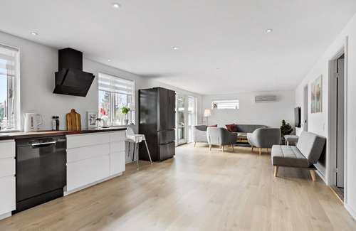 In a quiet location between the Kattegat coast and Roskildefjord, this bright and attractive vacation home welcomes you. The modern and pleasant interior promises you a great environment in the spacious rooms for socializing on the sofas, game nights at the dining table and cooking evenings in the well-equipped kitchen.