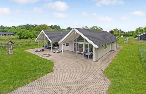 Fantastic quality wooden house in Lohals. It is bright and beautifully furnished and houses modern equipment. 6 sleeping accommodations can be found on sleeping lofts. In the house there is a large kitchen-living room, it is located in the middle of the house and serves as an area for a cozy get-together for cooking and relaxing in front of the cozy fire of the fireplace stove. Next door is right away the activity room. One of the 4 bathrooms in the house has a whirlpool and access to a sauna for 3 to 4 people. On the 150 m² terrace, 50 m² of which are covered, you can sit and enjoy your vacation. On warm evenings you can also enjoy a barbecue here. In the charming Lohals you can walk beautifully in the harbor and along the marina.
