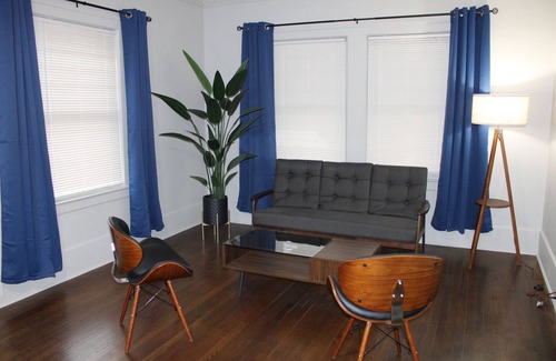 Welcome to Detroit home to our Beauty Completely renovated 4-bedroom, 2 full bath home in desirable North End area. Enjoy a stylish experience at this spacious and centrally located home! Ideal for families, and groups. Extremely comfortable beds (Sleep 10-11 with 1-King, 2-Queen, 1-Full, 1-Twin bed, 1-Sofa bed).
