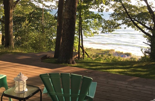 Oakmont is a private corporate retreat and vacation custom home featuring 4 spacious bedrooms, 2 full bathrooms, a new 50k custom kitchen renovation, 9' ceilings, large spacious deck overlooking Lake Michigan along with 80' of private white sand beach. Enjoy the fresh water of Lake Michigan each day and the spectacular sunsets each evening from the beach, deck or home. Bed linens, towels, beach chairs, umbrellas, kayak provided. Sleeps up to 10 guests.