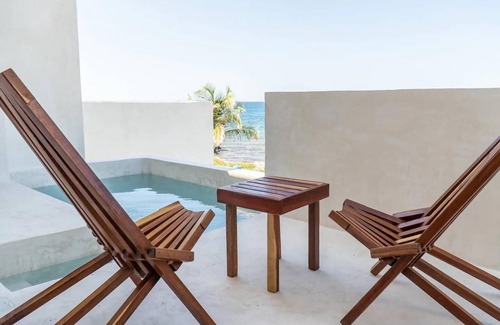 Villa Saadhu This exclusive villa with boho design is located in the central part of Isla Mujeres, just steps from the beach and an incredible ocean view. It has 1 master suite, 3 secondary bedrooms, 4 full bathrooms, kitchen, living room, dining room, parking, swimming pools, patio, terraces and incredible sea views, air conditioning and WIFI throughout the villa. Ideal for families, couples or groups of friends looking for tranquility and relaxation.
