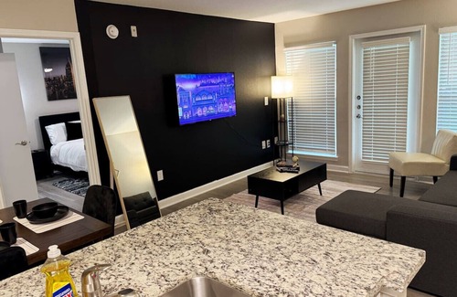 Gothic Blush | King 2Bed near TMC & infront of NRG has 2 Bedrooms , 2 Bathrooms, and max occupancy of 6 people. The minimum rental for this property is 1 nights, but this can change depending on the season you plan on staying. Previous guests have given good rated it, and VRBO labeled it a top-rated Apartment because of the excellent services rendered by the owner or manager of this Apartment, and has consistently provided great experiences for their guests. Most families or guests that use it recommend it to their friends and some of them are repeat guests. Apartment has a friendly neighborhood, and the Astrodome has interesting places to visit. If you want to learn more about the Apartment in Astrodome, such as places to visit and things to do nearby, you can check below to learn more.