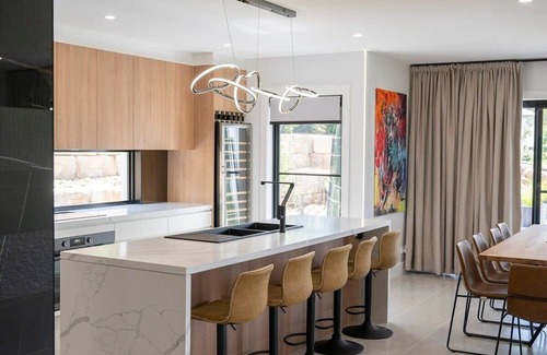 BNB Made Easy is a professional short-term rental property management company, so rest assured your stay at Grand Stirling will be comfortable and seamless. Exuding grandeur in every corner, the staircase stands as the focal point of the home and is accentuated by opulent feature lighting and captivating artwork, creating an atmosphere of unparalleled luxury. Cultivate your own special memories within the 4K theatre room and set the scene for family movie nights with a projector, vibrant LED lights, and electric blockout curtains for a premium experience. After a leisurely visit to Swinging Bridge Wines (6 mins), wine enthusiasts will treasure the luxurious 170 Bottle Wine Cabinet for preserving wine integrity and enhancing the overall wine tasting experience. Entertain in style and bask in the delightful ambience of the colour-changing mist maker with your cherished stream of guests.