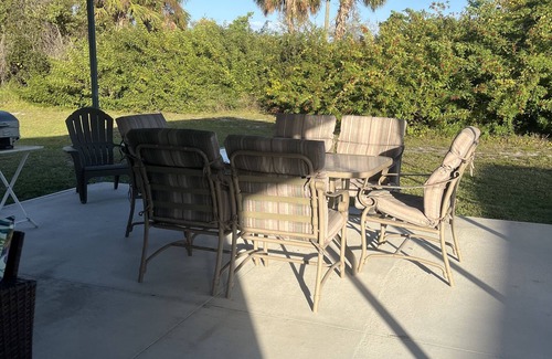 Enjoy many south-western Florida destinations and activities nearby. Then come home to Grandma's Cottage to relax in the living room. Turn on the large TV while enjoying the aroma coming from our full new kitchen. The bedroom is perfect to reenergize for your next day's activity. Or, sit in our soft lounge chairs with your feet up under the 24x40 outside covered cement sitting area and just enjoy what nature has to offer.