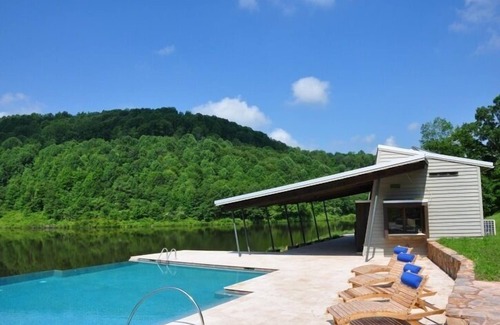 Our historic home is located on 125 acres in the Appalachian mountains. The house has 3 bedrooms and two baths. It has been completely renovated in 2014. Great mountain views from every window. Guests can enjoy our 50 acre fully stocked lake with a 2,000 sq ft. clubhouse, full kitchen, bathrooms and changing rooms located 5 miles away. The Pool and lake is shared with guests from our second home Enjoy the infinity edge pool, hot tub, sauna, sandy beach plus 7 miles of walking and bicycling trails. It’s the perfect place for a secluded vacation.. White water rafting, zip line tours and scenic state parks are within a forty-five minute drive plus day trips to the historic town of Lewisburg and the world famous Greenbrier resort are a half hour drive. Excellent WiFi