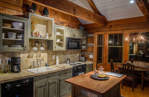 The cabin is a beautifully appointed, two-bedroom, two and a half bath cabin, offering a loft with two bunk beds (perfect for kids), a wood burning fire place, and a full kitchen. It can sleep up to 8 people and is comfortable, cozy and can act as a private getaway or be an addition to a larger group when combined with our Main Lodge (VRBO #413823).