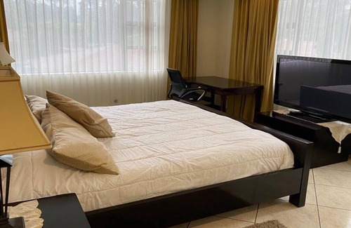 Fully furnished apartment, with everything you may need form cooking utensils, to a nice dinning and living room. Small bar space, family room with 50¨ Tv. 3 Bedrooms, master bedroom with private bathroom and king bed; and two secondary bedrooms with queen beds and shared bathroom. Complex has a heated pool, fully equiped gym, sports area, and green areas. Located at walking distance from restaurants, shops, and movie theaters.