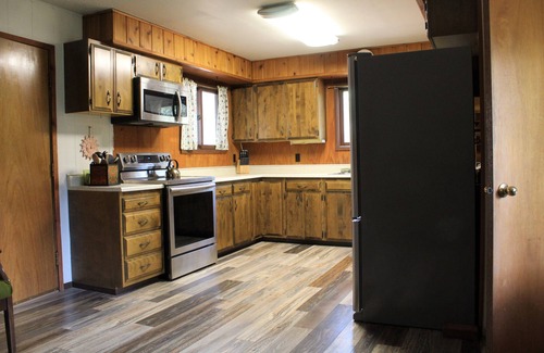 This rustic home now has been updated with New Flooring, New Stove, New Dining Room Table, New Refrigerator, New Couch, added a Dishwasher and New Mattresses! This cabin has 2 bedrooms and 1 bathroom and is capable of sleeping up to 8 people in beds. There is access to your own private beach just across the road on Lake 5 with a dock.