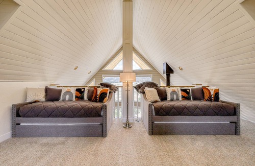 The home is a modern spin on farmhouse living. Inside you'll find a newly remodeled bright interior with plenty of natural light, thanks to the large viewing windows in the living area. The open floor plan promotes togetherness and nobody will miss out on the conversation. Sit back and relax to host a movie night on the large TV, while warming yourself by the wood-burning stove. Prepare grand meals and on-the-go snacks in the gourmet kitchen, complete with stainless steel appliances and a floating island breakfast bar. Make memories around the formal dining table, whether it's over a board game or a delicious home-cooked meal. Each bedroom is comfortable, with ample space for personal effects. The main bedroom is equipped with a soft King-sized bed, a TV for private viewing, and a luxurious en suite bathroom that includes a double-sink vanity, a soaking tub, and a roomy walk-in shower. Kids will love bunking down and making memories together in the bunk beds. Chalk up some friendly competition and play on the pool table in the basement, which also has a kitchenette for snacking and a large TV with an Xbox. Enjoy the quaint backyard with a mini playhouse for the kids. At the end of the day, take advantage of the gorgeous Utah sunsets by sitting on the massive wrap-around porch, watching the stars come out to dot the sky.
