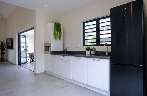 Experience the ultimate getaway in this modern, full air condition and full equipped, newly built home! Nestled in a gated community with 24/7 security, it features a cozy private pool area and unbeatable location across from the iconic Mambo Beach area. Just a 5-minutes' walk to pristine beaches, vibrant restaurants, nightlife, Dolphin Academy, shops, gym, diving schools, ATVs/car rental, padel/tennis courts, casino, playgrounds and more close by. Plus, you are just a 5-minutes drive to the city center