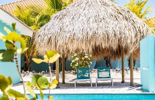 The house is equiped with a nice kitchen including a dishwasher. From the livingroom you directly walk in to the spacious porche with dining table. Enjoy the sunset with a view over the mountains at Bandabou Curacao. In the garden there is a private pool. After your swim you can sit back and relax at the palapa on one of the beach beds...