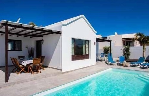 Mirador Brisas is located in the lovely resort of Matagorda and only a short drive from the airport. Here you will a shopping centre with a nice selection of restaurants and shops only a short walk away meaning a car is not required. However if you wish to explore more of the island, just a short drive away you will discover the lively resort of Puerto Del Carmen offering a large variety of restaurants, shops and Bars. The closest beach Playa Guacimeta is only a stone throw away for beach lovers who enjoy the sea air and Puerto del Carmen’s long sandy beach is only a 5 minute drive. If you enjoy sunset walks there is a fantastic coastal promenade next to the villa perfect for cycling and stretching your legs. The villa itself is set on one level and is a perfect choice for those who wish to be in a quieter resort but can easily reach the hustle and bustle of Puerto del Carmen. Inside the villa offers three comfortable bedrooms, one double and two twin all featuring air conditioning to ensure a pleasant night’s sleep. The open plan lounge and dining area offers a relaxing space to enjoy chilled evenings in enjoying your favourite home cooked meals and watching the satellite television with English speaking channels. Exit through the patio doors to the inviting swimming pool offering heaps of fun for all of the family and a covered dining area where you can dine alfresco whilst admiring the beautiful sea views. All bedroom and bathroom linen is included. Bath towels are also provided. This property comes with Free Wi-Fi, Free Air Conditioning, Free Cots, Free Highchairs, FREE electrically heated pool during winter months (1st Nov - 31st May).