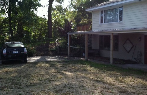 We are a group rental suite, with three lovely bedrooms, kitchen dining and living room, sunny East deck surrounded by trees. The lower level is a fully equipped banquet/catering facility, complete with outdoor service area and outdoor Brick Oven. Have your family and friends gather and enjoy this as your home on the Great River Highway.