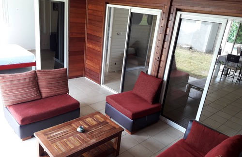 Single storey villa of 160 m2 (including 40 m2 of terraces) in exotic red wood with a salt pool of 35 m3 on a beautiful flat plot of 1200 m2