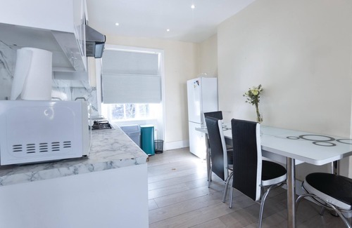 it is very wide, perfect for families, it is walk distance to many attractions and also from tube. The kitchen has everything what you would need. Towels and bed sheets are included. You can ask for extra cleaning during the stay or concierge service.