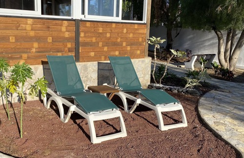 Directly located in the center of Costa Calma. With 3 bedrooms and 2 bathrooms. One bedroom onsuite, one with a bunkbed and one with two single beds, room enough for 6 people. High Speed WIFI, work desk with an office chair, Smart TV, airconditioned in the living room, equipped kitchen and private parking. All surrounded by 600m2 of gardens with local plants. Completely private and with no neighbors. Supermarket and bakery directly opposite at 50 meters. More supermarkets, restaurants and bars within 10 minutes walk. The beach of Costa Calma is 15 minutes on foot and the famous Sotavento beach is just 2 minutes by car.