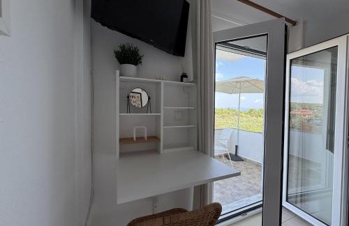 Food & DrinkTea/Coffee makerBathroomTowels, Shower, Toilet paper, Toilet, Free toiletries, Bathrobe, Private bathroomGeneralHeating, Air conditioning, Fire extinguisherKitchenRefrigerator, Dining table, Kitchenette, Kitchenware, Electric kettleOutdoorsBalconyMedia & TechnologyFlat-screen TVViewView, Sea viewBedroomWardrobe or closet, LinensRoom AmenitiesClothes rack |